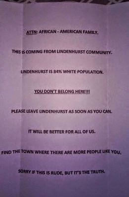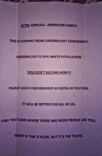 When the black family in Lindenhurst received the anonymous threatening letter telling them to move out of Lindenhurst, the analysis of the letter showed that it was written from, not a white racist threatening harm should they not move, but from a black female who was intimately familiar with the family, and had an empathy with the troublesome duties associated with moving, itself.